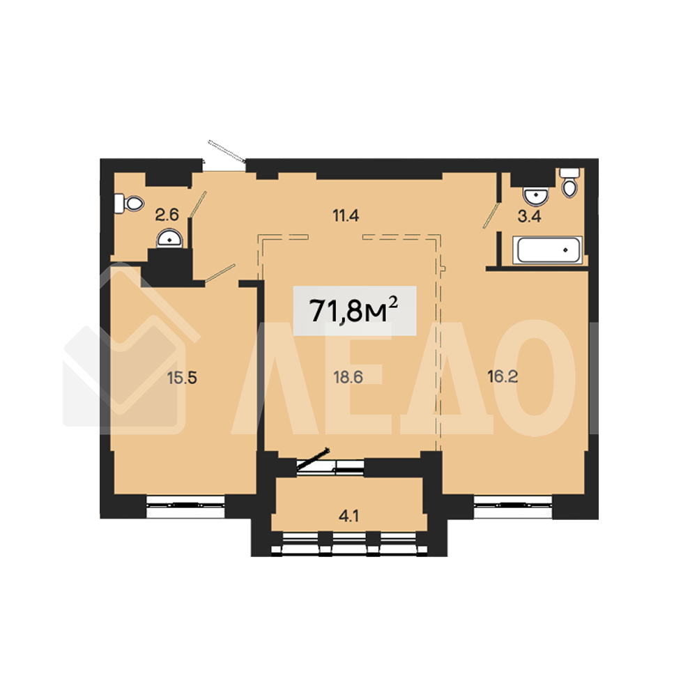 - Площадь общая: 69.00 м2