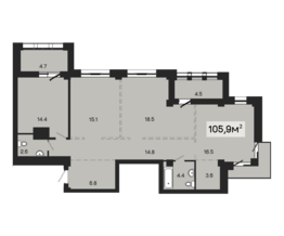 - Площадь кухни: 14.40 м2